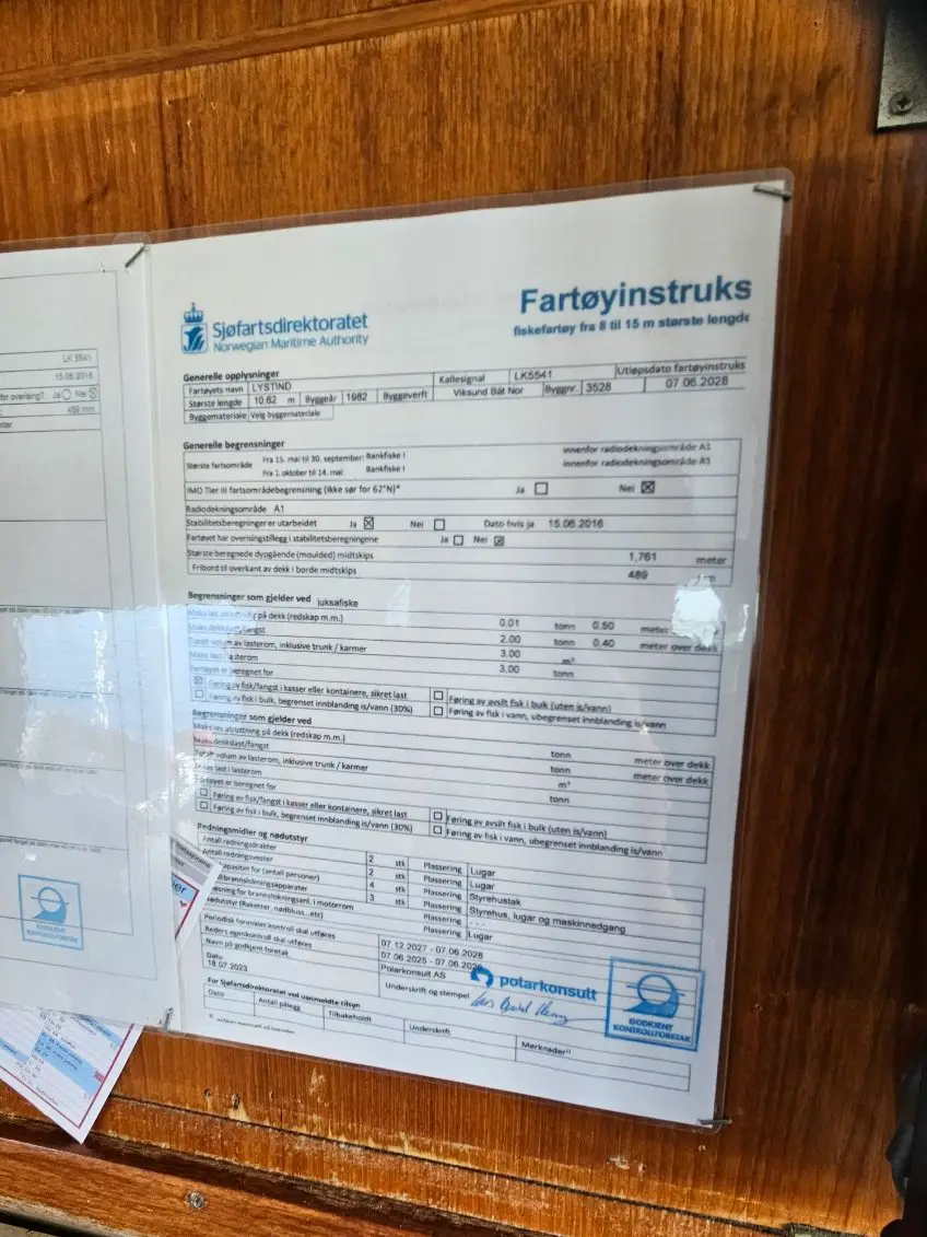 Fartøyinstruks gyldig til 07.06.2028 |